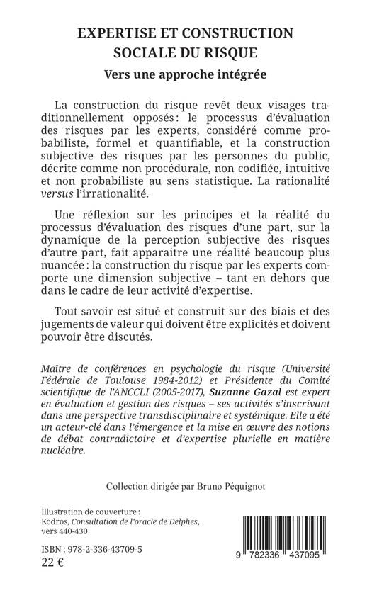 La construction du risque revêt deux visages traditionnellement opposés le processus d'évaluation des risques par les experts, considéré comme probabiliste, formel et quantifiable, et la construction subjective des risques par les personnes du public, décrite comme non procédurale, non codifiée, intuitive et non probabiliste au sens statistique. La rationalité versus l'irrationalité. Une réflexion sur les principes et la réalité du processus d'évaluation des risques d'une part, sur la dynamique de la perception subjective des risques d'autre part, fait apparaitre une réalité beaucoup plus nuancée la construction du risque par les experts comporte une dimension subjective - tant en dehors que dans le cadre de leur activité d'expertise. Tout savoir est situé et construit sur des biais et des jugements de valeur qui doivent être explicités et doivent pouvoir être discutés.