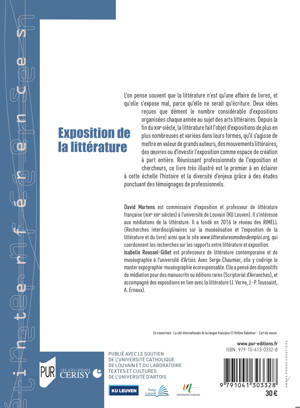 L’on pense souvent que la littérature n’est qu’une affaire de livres, et qu’elle s’expose mal, parce qu’elle ne serait qu’écriture. Deux idées reçues que dément le nombre considérable d’expositions organisées chaque année au sujet des arts littéraires. Depuis la fin du XIXe siècle, la littérature fait l’objet d’expositions de plus en plus nombreuses et variées dans leurs formes, qu’il s’agisse de mettre en valeur de grands auteurs, des mouvements littéraires, des oeuvres ou d’investir l’exposition comme espace de création à part entière. Réunissant professionnels de l’exposition et chercheurs, ce livre très illustré est le premier à en éclairer à cette échelle l’histoire et la diversité d’enjeux grâce à des études ponctuant des témoignages de professionnels.