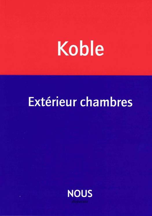 L'écriture de Nathalie Koble se caractérise par un travail de déplacement dans la reprise. Faisant sien le « make it new » d'Ezra Pound, elle invente une langue poétique hybride, entre les temps, les langues et les genres. Extérieur chambres est une consolation de poésie. Le livre rejoue des itinéraires, disperse les voix, varie les dispositifs d'écriture et de lecture. Pour donner forme à l'aléatoire et créer de l'espace, il fait boucle autour de trois moments essentiels : le déplacement, la rencontre, la disparition. Et fait tourner