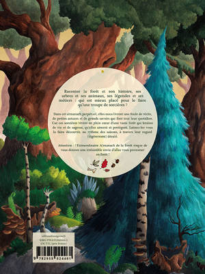 L'Extraordinaire Almanach de la Forêt est un beau livre illustré gorgé d'infos, de petites astuces et de grands savoirs qui font le quotidien de sorcières hautes en couleur. Ces dernières vivent en plein cœur d'une vaste forêt qui bruisse de vie et de sagesse, qu’elles nous font découvrir à travers leur regard fantaisiste. Inspiré des anciens almanachs, ce livre aborde la forêt par trois chemins : celui de la découverte naturaliste d’un biotope exemplaire, celui d’un lieu en rapport avec l’humanité et celui de l’imaginaire, des légendes et de la magie. Des cahiers couleurs dédiés au passage des saisons sont entrecoupés d’éphémérides illustrés. Une petite encyclopédie farfelue clôt le livre.