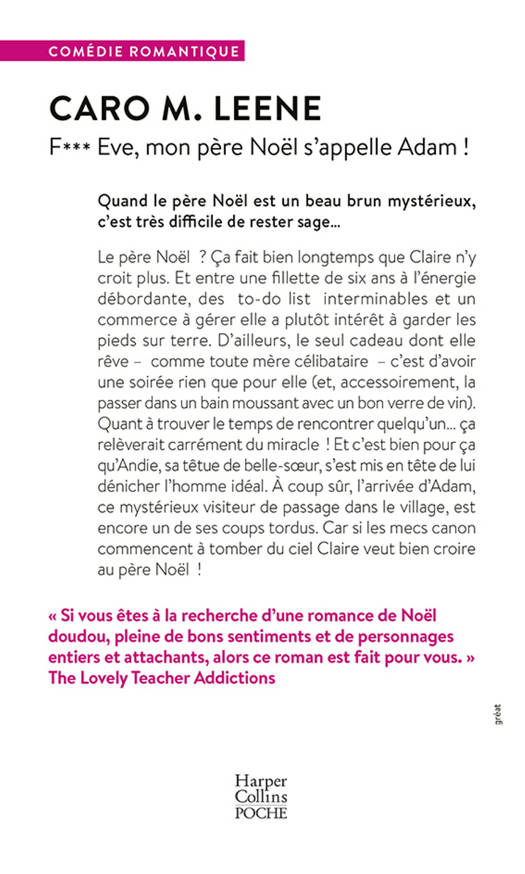 "Si vous êtes à la recherche d'une romance de Noël doudou , pleine de bons sentiments et de personnages entiers et attachants, alors ce roman est fait pour vous. Caro M Leene nous régale avec ce récit haut en couleur et idéal pour les fêtes de Noël." The Lovely Teacher Addictions