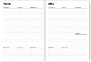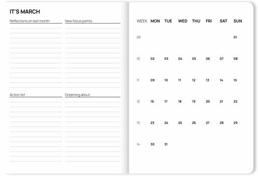 De nieuwe Fabrique agenda's 2026 geven instant good vibes. Het binnenwerk is strak vormgegeven en lekker overzichtelijk met voldoende ruimte om je dagen te vullen. Ook handig: onderin is bij elke week extra ruimte vrijgelaten voor taken en notities. Dus geen gedoe meer met onleesbare krabbels maar duidelijke aantekeningen. En wat is er nou lekkerder dan met een mooie lege agenda nieuwe jaarplannen te maken? Laat 2026 maar beginnen, jij bent er klaar voor met een Fabrique agenda. + Weekoverzichten + Leeslintje + Creme kleurig papier + FSC Gecertificeerd + Ruimte voor notities en to do's