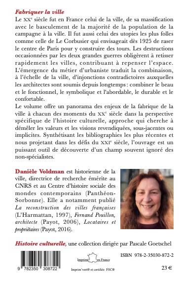 Le xxe siècle fut en France celui de la ville, de sa massification avec le basculement de la majorité de la population de la campagne à la ville. Il fut aussi celui des utopies les plus folles comme celle de Le Corbusier qui envisageait dès 1925 de raser le centre de Paris pour y construire des tours. Les destructions occasionnées par les deux grandes guerres obligèrent à retisser rapidement les villes, contribuant à repenser l’espace. L’émergence du métier d’urbaniste traduit la combinaison, à l’échelle de la ville, d’injonctions contradictoires auxquelles les architectes sont soumis depuis longtemps : combiner le beau et le fonctionnel, le symbolique et l'abordable, le durable et le confortable. Le volume offre un panorama des enjeux de la fabrique de la ville à chacun des moments du xxe siècle dans la perspective spécifique de l’histoire culturelle, approche qui cherche à démêler les valeurs et les visions revendiquées, sous-jacentes ou implicites. Synthétisant les bibliographies les plus récentes et nous projetant dans les défis du xxie siècle, l’ouvrage est un puissant outil de découverte d’un champ souvent ignoré des non-spécialistes.