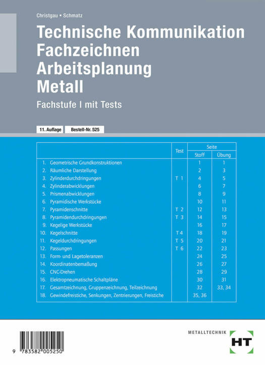 Diese weiterführenden Arbeitsblätter setzen das Konzept des gleichnamigenGrundstufenbands fort und beinhalten Lückentexte und Zeichenaufgaben zu denThemen räumliche Darstellungen, Durchdringungen, Abwicklungen, Schnitte,Toleranzen u.a. Mit den abtrennbaren Tests kann der Wissenstand kontrolliertwerden. Die Neuauflage wurde redaktionell überarbeitet und optisch ansprechendaufbereitet.
