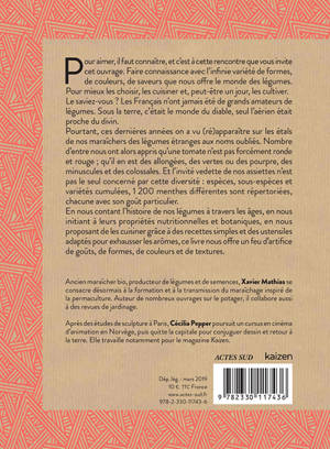 Ces dernières années on a vu (ré)apparaître sur les étals de nos maraîchers tout un tas de légumes du passé qu'on avait oublié et nous sommes mis à ne plus regarder de travers ceux que nous connaissions bien, mais dont la forme était inhabituelle. Nombre d'entre nous ont alors appris qu'une tomate n'est pas forcément ronde et rouge. Qu'il en est des allongées, des vertes ou des pourpres, des minuscules et des énormes. Et le légume phare de nos assiettes n'est pas le seul concerné par cette diversité. Les légumes composent un monde infini, divers, plein de surprises, dans lequel il est tellement plaisant de voyager, comme il est paradoxalement plaisant de savourer les joies de la frustration : quel plaisir d'attendre pour chacun leur saison ! Ce livre en nous contant l'histoire de nos légum