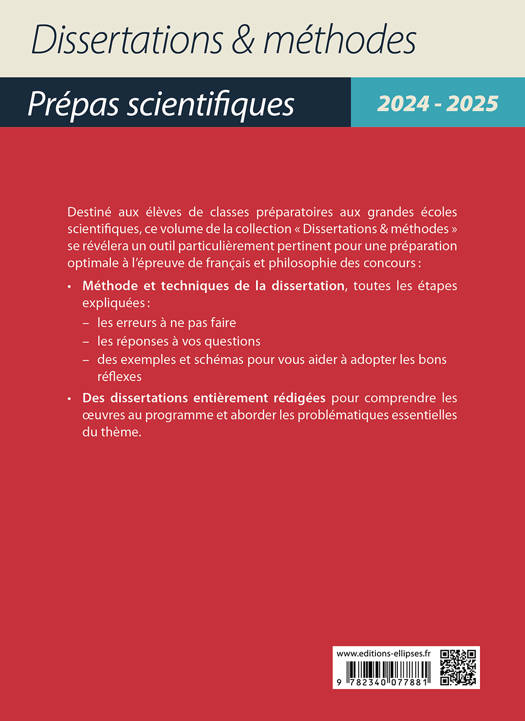 Destiné aux élèves de classes préparatoires aux grandes écoles scientifiques, ce volume de la collection « Dissertations & méthodes » se révélera un outil particulièrement pertinent pour une préparation optimale à l’épreuve de français et philosophie des concours :