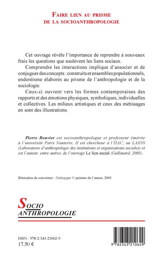 Cet ouvrage révèle l'importance de reprendre à nouveaux frais les questions que soulèvent les liens sociaux.Comprendre les interactions implique d'associer et de conjuguer des concepts : construits et ensembles populationnels, endoréisme élaborés au prisme de l'anthropologie et de la sociologie. Ceux-ci ouvrent vers les formes contemporaines des rapports et des émotions physiques, symboliques, individuelles et collectives. Les milieux artistiques et ceux des métissages en sont des illustrations.