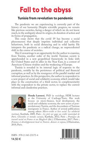 This essay shows that the covid 19 has become a social phenomenon that deeply imprints individual and collective behaviours, both in social distancing and in solid laarity. He interprets the pandemic as a radical change, an unprecedented shift in the course of societies. This Coronavirage is an opportunity for the author to examine, from Tunisia, another order of the world.Tunisian society is apprehended in a new geopolitical framework : its links with the United States and its allies in the Near East, in a context of American-Chinese rivalries and the weakening of Europe. Tunisia is revealed in its internal logic of response to the pandemic, notably by the persistence of political and financial corruption, as well as by the resurgence of the parallel market and informal practices. In this perspective, the author in respondent to a new project of social and solidarity economy, which would take place in the construction of a third sector, in complementarity with the respondent to the private sector, to replace the current informal and clandestine practices.