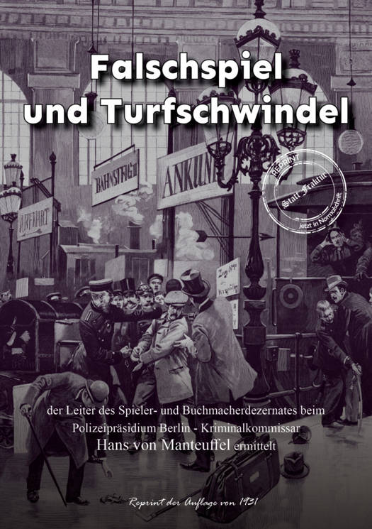Falschspiel und Turfschwindel - Der Leiter des Spieler- und Buchmacherdezernates beim Polizeipräsidium Berlin - Kriminalkommissar Hans von Manteuffel ermittelt: "Manteuffel kommt!!!"... Dieser Alarmruf hat während der zwanzig Jahre meiner Tätigkeit als Leiter des Spieler- und Buchmacherdezernates beim Polizeipräsidium Berlin - also von 1893 bis zum August 1914 - so manche Spieler- und Buchmachergesellschaft derart in Schrecken versetzt, dass sie oft in panikartiger Flucht die Stätte ihrer gewinnbringenden Tätigkeit verließ, einem Taubenschwarm gleich, den ein Habicht bedroht. ... Dies sind Zeilen aus dem vorliegenden Werk , wo der Kriminalkommissar v. Manteuffel seine Dienstzeit im Kampf gegen Falschspieler und Bauernfänger im Berlin der Jahrhundertwende bis zu den goldenen Zwanzigern und näher bringt, sehr gute Darstellung der Verbrechen dieser Zeit.