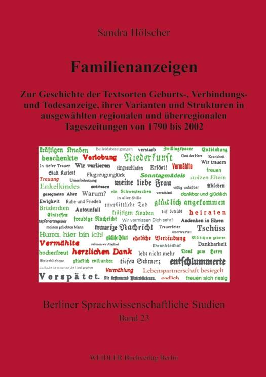 Zur Geschichte der Textsorten Geburts-, Verbindungs- und Todesanzeige, ihrer Varianten und Strukturen in ausgewählten regionalen und überregionalen Tageszeitungen von 1790 bis 2002