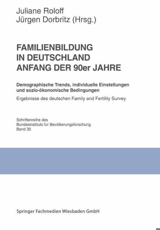 Im Jahre 1992 ist im Rahmen eines internationalen Forschungsprojektes durch das Bundesinstitut für Bevölkerungsforschung der Family and Fertility Survey (FFS) in West- und Ostdeutschland in Kombination mit dem Population Policy Acceptance Survey (PPA) erhoben werden. Im vorliegenden Band 'Familienbildung in Deutschland Anfang der 90er Jahre Demographische Trends, individuelle Einstellungen und sozio-ökonomische Bedingungen' werden nun die wichtigsten Ergebnisse verschiedener FFS- und PPA-Auswertungsprojekte aus Einzelveröffentlichungen in komprimierter Form vorgestellt. Hauptanliegen dieser Veröffentlichung ist es, Bilder der Familie in Deutschland zu zeichnen und Aussagen zu ihrer Überlebensfähgikeit und damit zu den zukünftigen Fertilitätstrends zu gewinnen. Diese immer wieder aktuelle Problemstellung hatte Anfang der 90erJahre mit der deutschen Wiedervereinigung und dem damit einhergehenden Wandel der demographischen Situation in Ostdeutschland ein besonderes Gewicht. So wird der Frage nachgegangen, ob sich mit dem Verhaltenswandel auch die Einstellungen zur Familie geändert haben, ob es Anzeichen einer längerfristigen Divergenz in den Verhaltensmustern zwischen West- und Ostdeutschland gibt. Aber auch für Westdeutschland harrten drängende Fragen einer Beantwortung hinsichtlich der Zukunft der Familie.