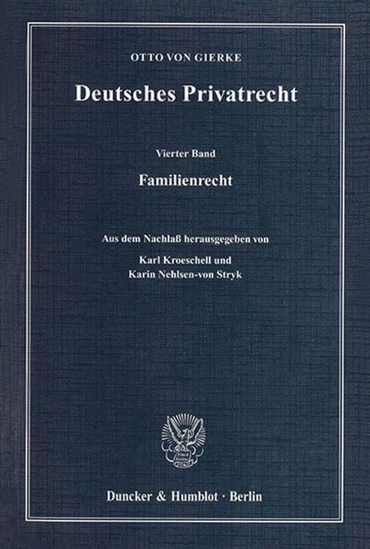 Der vorliegende Band »Familienrecht« veröffentlicht erstmals das nachgelassene Manuskript des großen germanistischen Rechtsgelehrten Otto von Gierke (1841-1921). Das »Familienrecht« war als IV. Band seines bedeutenden Werkes »Deutsches Privatrecht« geplant, dessen erste drei Bände »Allgemeiner Teil nebst Personenrecht«, »Sachenrecht« und »Recht der Schuldverhältnisse« in den Jahren 1895, 1905 und 1917 erschienen waren. Gierkes Tod hat die Beendigung des IV. Bandes verhindert. Fertiggestellt war aber ein immerhin fast 900 Blatt umfassendes Manuskript, das mit Ausnahme des Rechts der Vormundschaft und der Pflegschaft das gesamte Familienrecht behandelt, also Eherecht und Ehegüterrecht, Verwandschaftsrecht und die Rechtsverhältnisse zwischen Eltern und Kindern.Die hohe Anerkennung, die den erschienenen Bänden des Deutschen Privatrechts als »Summe der deutschen Privatrechtsdogmatik des 19. Jh.« zuteil geworden ist, darf in gleicher Weise der Band »Familienrecht« für sich beanspruchen. Gleichermaßen wie bereits im II. Band tritt auch hier Gierkes Anliegen, das BGB im Licht deutschrechtlicher Traditionen darzustellen, deutlich hervor. Zudem dürfte der Band »Familienrecht« neue Anstöße zur wissenschaftsgeschichtlichen Würdigung Gierkes geben, hat Gierke doch stets auch Ehe und Familie als Ausformung des deutschrechtlichen Genossenschaftsgedankens proklamiert. Eine reiche Fundgrube stellt der Band aber auch für die Geschichte des Familienrechts selbst dar. Die Fülle des in Form gebrachten und dogmatisch durchleuchteten Stoffes nötigt nach wie vor Bewunderung ab. Erwähnt sei hier nur die breite Berücksichtigung der nahezu unabsehbaren deutschen Partikulargesetzgebung des 19. Jh., die selbstverständliche rechtsvergleichende Einbeziehung der europäischen Kodifikationen und vor allem: eine an Detailfülle und Genauigkeit wohl unerreichte Gesamtdarstellung des Familienrechts in den ersten 20 Jahren des BGB.