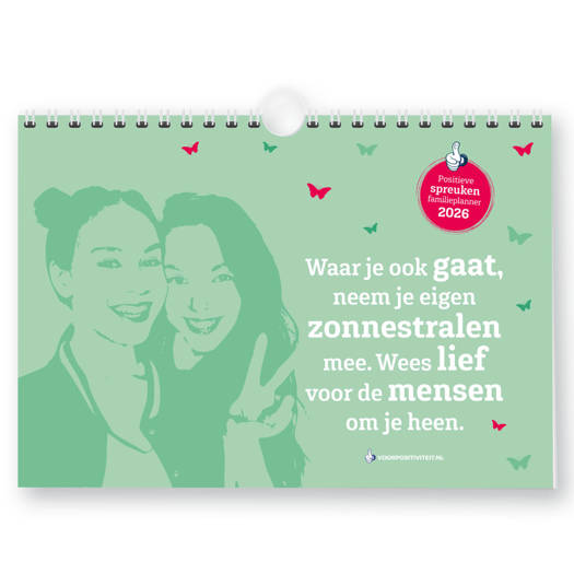 Deze positieve weekplanner heeft ruim voldoende plek voor 5 gezinsleden. Met wekelijks een prachtige positieve spreuk, ruimte voor extra notities en kleurrijke stickervellen. En een handige indeling, met iedere volgende week op een volgend vel. Met deze kalender vol positieve energie wordt samen plannen nog leuker. Dagelijks verschijnen de spreuken van Voor Positiviteit op sociale media. De positieve spreuken worden gedeeld en gewaardeerd door vele enthousiaste volgers. Geniet ervan!