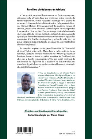 « Une société sans famille est comme un fruit sans noyau », dit un proverbe africain. Face aux problèmes qui se posent à la famille aujourd’hui, Paulin Poucouta s’interroge sur la qualité de ce noyau. Il s’inspire de la tradition africaine, de la parole de Dieu, des Pères de l’Église, de l’enseignement du magistère romain et africain, pour savoir comment la famille peut mieux répondre à sa vocation : être un lieu d’apprentissage et de réalisation du vivre-ensemble. Le chemin synodal a indiqué des pistes, dans la dynamique de nombreuses rencontres continentales et régionales consacrées à la famille, ainsi que les synodes de 1981, 2013 et 2014. Comment faire de la famille un espace de convivialité et un chemin d’espérance ? La question se pose, certes, pour l’ensemble de l’humanité et pour l’Église universelle. Mais, dans le cadre restreint de sa réflexion, l’auteur a tenu à se concentrer sur l’Afrique qu’il connaît le mieux. Sur ce continent en pleine mutation, les familles n’ont-elles pas la lourde responsabilité d’être aux avant-postes de la renaissance de l’Église et de la société ? Ne doivent-elles pas contribuer à guérir les coeurs et les relations blessées, à maintenir et à susciter l’espérance ?