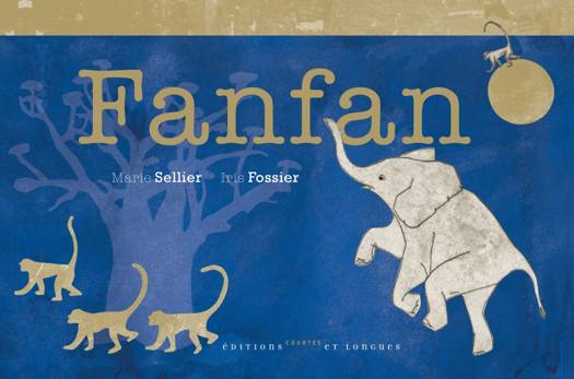 Marie Sellier et Iris Fossier racontent en bleu, or et brun la quête de Fanfan pour découvrir ses origines et faire le choix de sa vraie famille : éléphants ou autruches ?