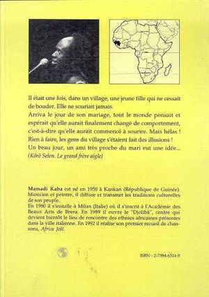 Il était une fois, dans un village, une jeune fille qui ne cessait de bouder. Elle ne souriait jamais. Arriva le jour de son mariage, tout le monde pensait et espérait qu'elle aurait finalement changé de comportement, c'est-à-dire qu'elle aurait commencé à sourire. Mais hélas ! Rien à faire, les gens du village s'étaient fait des illusions ! Un beau jour, un ami très proche du mari eut une idée... (Kôrô Selen. Le grand frère aigle)