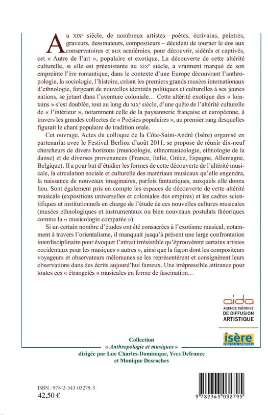 Cet ouvrage a pour but d'étudier les formes de la découverte de l'altérité musicale qui s'est développé au XIX° siècle, la circulation sociale et culturelle des matériaux musicaux qu'elle engendra, la naissance de nouveaux imaginaires auxquels elle donna lieu. Sont également pris en compte les espaces de découverte de cette altérité musicale (expositions universelles et coloniales) et les cadres scientifiques et institutionnels en charge de l'étude de ces nouvelles cultures musicales.