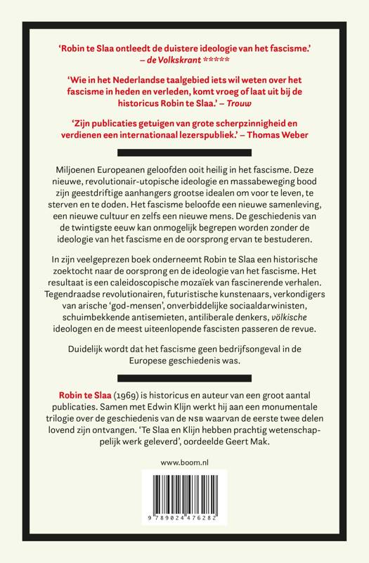 In zijn veelgeprezen boek onderneemt Robin te Slaa een historische zoektocht naar de oorsprong en de ideologie van het fascisme. Het resultaat is een caleidoscopische mozaïek van fascinerende verhalen. Tegendraadse revolutionairen, futuristische kunstenaars, verkondigers van arische ‘god-mensen’, onverbiddelijke sociaaldarwinisten, schuimbekkende antisemieten, antiliberale denkers, völkische ideologen en de meest uiteenlopende fascisten passeren de revue.