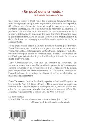 Nous avons grand besoin d’un tout nouveau modèle, plus humain. Dana Thomas a parcouru le monde pour rencontrer des créateurs visionnaires et des entreprises qui sont en train de propulser l’industrie vers un avenir plus positif en revenant vers l’artisanat traditionnel ou en développant des technologies durables de pointe afin de rendre la mode plus vertueuse.
