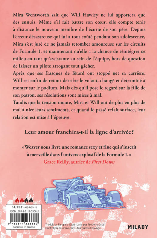 « Weaver nous livre une romance sexy et fine qui s'inscrit à merveille dans l'univers explosif de la Formule 1. Que vous soyez déjà fan du sport ou que vous le découvriez à peine, vous ne voudrez pas manquer l'histoire de Mira et Will ! » Grace Reilly, autrice de First Down