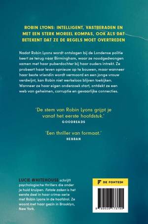 Deel 1 in de Robin Lyonss-serie. Na haar ontslag bij de Londense politie keert Robin Lyons terug naar Birmingham waar ze noodgedwongen samen met haar puberdochter bij haar ouders intrekt. Ze probeert haar leven opnieuw op te bouwen. Maar wanneer haar beste vriendin wordt vermoord en een jonge vrouw verdwijnt, kan Robin niet werkloos toekijken. Terwijl ze haar eigen onderzoek start, ontdekt ze een web van geheimen, corruptie en gevaarlijke connecties. Spannend boek voor fans van Nicci French en M.J. Arlidge.