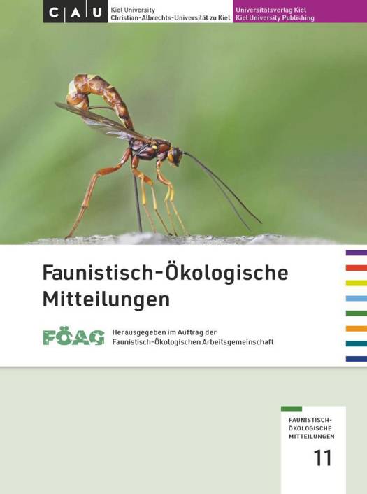 The Faunistisch-Ökologische Mitteilungen are an open access journal. Published are information on all animal species groups of northern Germany (with the exception of birds) as well as original research on ecological or conservation-related faunistic questions from this region. The current issue contains papers on the giant sawfly Tremex fuscicornis, Campodorus paradiesensis sp. nov., ground beetles, ichneumon wasp species and dragonfly fauna.