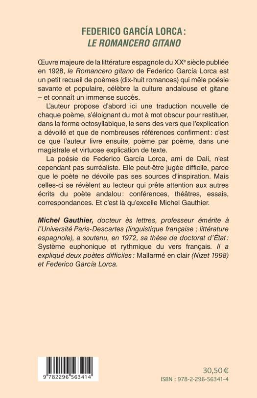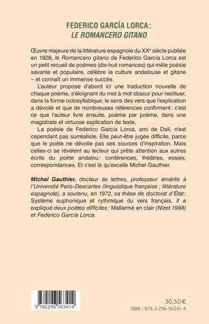uvre majeure de la littérature espagnole du XXe siècle publiée en 1928, le Romancero gitano de Federico García Lorca est un petit recueil de poèmes qui mêle poésie savante et populaire, célèbre la culture andalouse et gitane. L'auteur propose d'abord ici une traduction nouvelle de chaque poème, s'éloignant du mot à mot obscur pour restituer, dans la forme octosyllabique, le sens des vers que l'explication a dévoilé et que de nombreuses références confirment : c'est ce que l'auteur livre ensuite, poème par poème, dans une explication de texte.