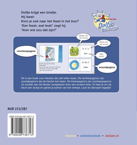 Een Paul van Loon voor kleuters! De rechterpagina’s van dit Dolfje Weerwolfje samenleesboek zijn woordpagina's die de kleuter zelf leest. De linkerpagina's zijn voorleespagina's voor de ervaren lezer. Ga er eens lekker voor zitten en lees gezellig samen over Dolfje, zijn vriendinnetje Noura en het feest in het bos.