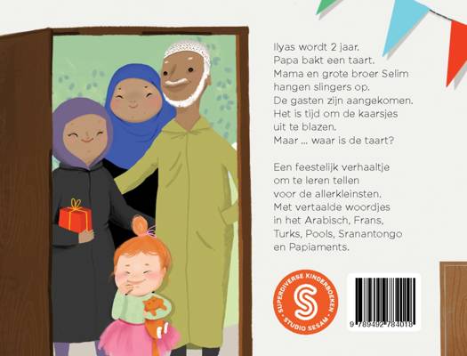 Feest voor Ilyas Khadija Timouzar & Mijke Coebergh Ilyas wordt 2 jaar. Papa bakt een taart. Mama,broer Selim en Ilyas versieren de taart. De gasten zijn aangekomen. Het is tijd om de kaarsjes uit te blazen. Maar ... waar is de taart? Een feestelijk verhaaltje om te leren tellen voor de allerkleinsten met vertaalde woordjes in het Arabisch, Turks, Frans, Pools, Sranantongo en Papiaments. Harde cover ver en stevig papier, 24 pagina's, volledig in kleur mét vertalingen.