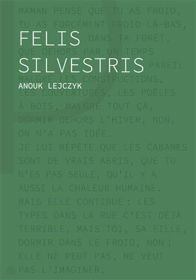 Premier roman d'Anouk Lejczyk, Felis Silvestris nous plonge, le temps d'un hiver, dans une histoire intime et sensible, explorant notre imaginaire et nos inquiétudes face à des choix de vie qui nous effraient autant qu'ils nous fascinent.
