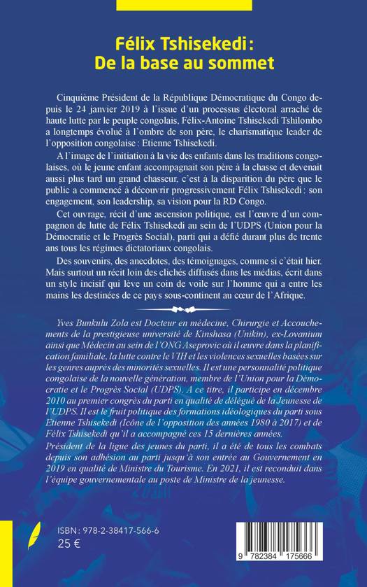 Cinquième Président de la République Démocratique du Congo depuis le 24 janvier 2019 à l'issue d'un processus électoral arraché de haute lutte par le peuple congolais, Félix-Antoine Tshisekedi Tshilombo a longtemps évolué à l'ombre de son père, le charismatique leader de l'opposition congolaise : Etienne Tshisekedi. A l'image de l'initiation à la vie des enfants dans les traditions congolaises, où le jeune enfant accompagnait son père à la chasse et devenait aussi plus tard un grand chasseur, c'est à la disparition du père que le public a commencé à découvrir progressivement Félix Tshisekedi : son engagement, son leadership, sa vision pour la RD Congo. Cet ouvrage, récit d'une ascension politique, est l'uvre d'un compagnon de lutte de Félix Tshisekedi au sein de l'UDPS (Union pour la Démocratie et le Progrès Social), parti qui a défié durant plus de trente ans tous les régimes dictatoriaux congolais. Des souvenirs, des anecdotes, des témoignages, comme si c'était hier. Mais surtout un récit loin des clichés diffusés dans les médias, écrit dans un style incisif qui lève un coin de voile sur l'homme qui a entre les mains les destinées de ce pays sous-continent au cur de l'Afrique.
