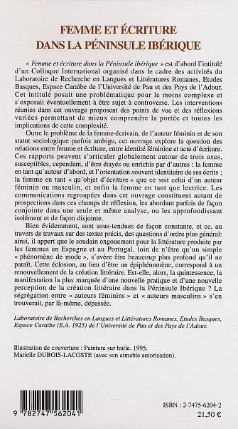 Objet d'un Colloque International organisé par l'Université de Pau, cet ouvrage, outre le problème de l'auteur féminin et son statut sociologique parfois ambigu, explore la question des relations entre femme et écriture, entre identité féminine et acte d'écriture, et ce, dans la littérature portugaise et espagnole du XIXème et XXème siècle. Ces rapports peuvent s'articuler autour de trois axes : tout d'abord la femme en tant qu'auteur, et l'orientation souvent identitaire de ses écrits ; puis la femme en tant "qu'objet d'écriture" que ce soit celui d'un auteur féminin ou masculin, et enfin, la femme en tant que lectrice.