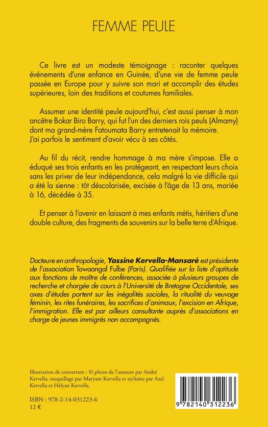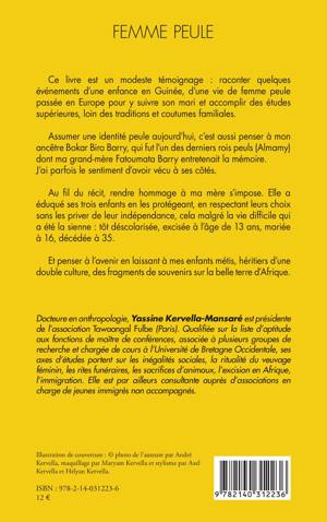 Ce livre est un modeste témoignage: raconter quelques évènements d'une enfance en Guinée, d'une vie de femme peule passée en Europe pour y suivre son mari et accomplir des études supérieures, loin des traditions et coutumes familiales. Assumer une identité peule aujourd'hui, c'est aussi penser à mon ancêtre Bokar Biro Barry, qui fut l'un des derniers rois peuls (Almamy) dont ma grand-mère Fatoumata Barry entretenait la mémoire. J'ai parfois le sentiment d'avoir vécu à ses côtés. Au fil du récit, rendre hommage ma mère s'impose. Elle a éduqué ses trois enfants en les protégeant, en respectant leurs choix sans les priver de leur indépendance, cela malgré la vie difficile qui a été la sienne: tôt déscolarisée, excisée l'âge de 13 ans, mariée à 16, décédée à 35. Et penser l'avenir en laissant à mes enfants métis, héritiers d'une double culture, des fragments de souvenirs sur la belle terre d'Afrique.