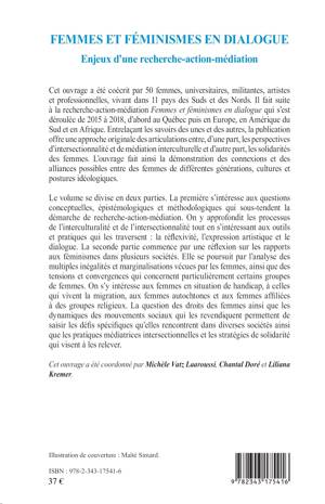 Cet ouvrage a été coécrit par 50 femmes, universitaires, militantes, artistes et professionnelles, vivant dans 11 pays des Suds et des Nords. Il fait suite à la recherche-action-médiation Femmes et féminismes en dialogue qui s'est déroulée de 2015 à 2018, d'abord au Québec puis en Europe, en Amérique du Sud et en Afrique. La publication offre une approche originale des articulations entre, d'une part, les perspectives d'intersectionnalité et de médiation interculturelle et, d'autre part, les solidarités des femmes.