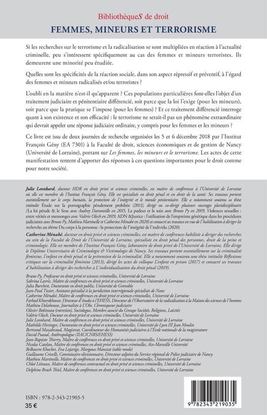 Si les recherches sur le terrorisme et la radicalisation se sont multipliées en réaction à l’actualité criminelle, peu s’intéressent spécifiquement au cas des femmes et mineurs terroristes. Ils demeurent une minorité peu étudiée. Quelles sont les spécificités de la réaction sociale, dans son aspect répressif et préventif, à l’égard des femmes et mineurs radicalisés et/ou terroristes ? L’oubli en la matière n’est-il qu’apparent ? Ces populations particulières font-elles l’objet d’un traitement judiciaire et pénitentiaire différencié, soit parce que la loi l’exige (pour les mineurs), soit parce que la pratique se l’impose (pour les femmes) ? Ce traitement différencié interroge quant à son existence et son efficacité : le terrorisme ne serait-il pas un phénomène extraordinaire qui devrait appeler une réponse judiciaire ordinaire, y compris pour les femmes et les mineurs ?