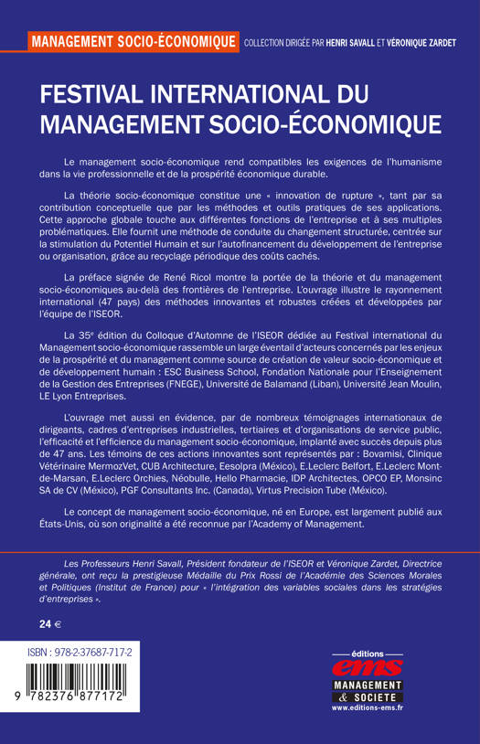 La préface signée de René Ricol montre la portée de la théorie et du management socio-économiques au-delà des frontières de l’entreprise. L’ouvrage illustre le rayonnement international (47 pays) des méthodes innovantes et robustes créées et développées par l’équipe de l’ISEOR.