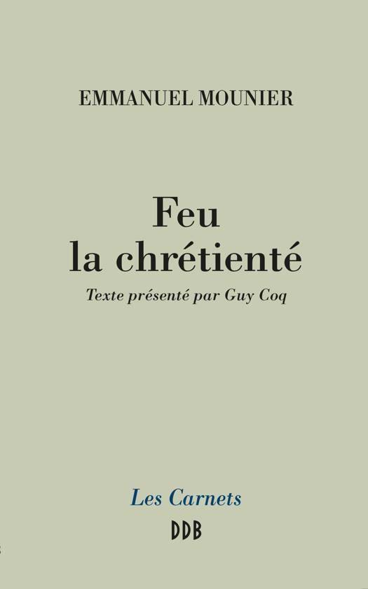 Dans Feu la chrétienté, un de ses derniers grands textes, Emmanuel Mounier livre en quelques pages le fondement spirituel et philosophique de son ouverture à la civilisation et à la société moderne. Son intuition de l'acceptation inéluctable de la laïcité par le monde catholique annonce déjà Vatican II. "Nous n'avons pas à apporter le spirituel au temporel, il y est déjà. Notre rôle est de l'y faire vivre, proprement de l'y communier. Le temporel tout entier est le sacrement du Royaume de Dieu", affirme-t-il. Nulle part Mounier n'a tracé une synthèse aussi lumineuse, aussi nécessaire sur les rapports entre le christianisme, la foi d'un côté, et la civilisation, l'histoire de l'autre.