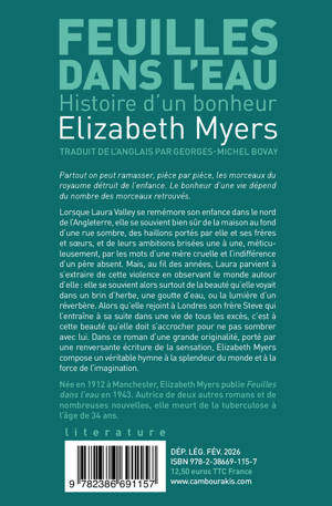 Lorsque Laura Valley se remémore son enfance dans le nord de l'Angleterre, elle se souvient bien sûr de la maison au fond d'une rue sombre, des haillons portés par elle et ses frères et soeurs, et de leurs ambitions brisées une à une, méticuleusement, par les mots d'une mère cruelle et l'indifférence d'un père absent. Mais, au fil des années, Laura parvient à s'extraire de cette violence en observant le monde autour d'elle : elle se souvient alors surtout de la beauté qu'elle voyait dans un brin d'herbe, une goutte d'eau, ou la lumière d'un réverbère. Alors qu'elle rejoint à Londres son frère Steve qui l'entraîne à sa suite dans une vie de tous les excès, c'est à cette beauté qu'elle doit s'accrocher pour ne pas sombrer avec lui. Dans ce roman d'une grande originalité, porté par une renversante écriture de la sensation, Elizabeth Myers compose un véritable hymne à la splendeur du monde et à la force de l'imagination.