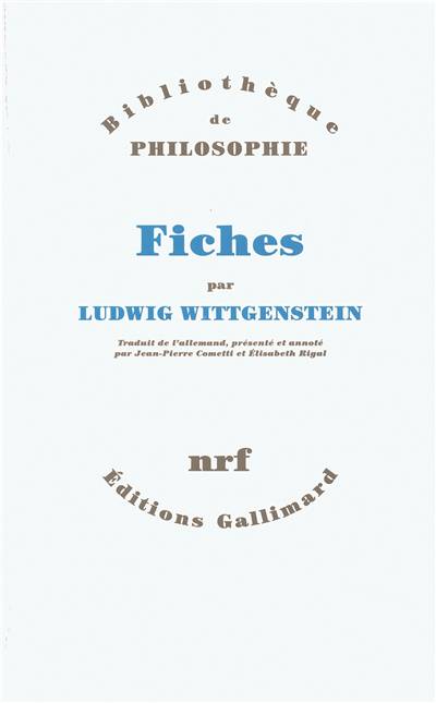 Les remarques qui composent ce volume ont été retrouvées dans une boîte à fiches, après la disparition de Wittgenstein. Elles sont issues de découpes faites dans diverses dactylographies datant de la période 1929-1948 - plus particulièrement des années 1945-1948. La raison d'être de cette boîte a intrigué les exécuteurs littéraires de Wittgenstein : à quelle fin extrayait-il de ses écrits certains fragments pour les introduire dans la boîte à fiches (parfois sans aucun classement, parfois en agrafant les remarques portant sur le même sujet) ? Et pourquoi réélaborait-il ensuite les coupures elles-mêmes ? Le travail qu'ils ont fait sur l'origine de ces coupures et leurs modifications les a conduits à supposer qu'il accordait une importance particulière aux éléments qu'il conservait de la sorte et que son intention était de les incorporer à des textes à venir. L'intérêt des Fiches tient à l'ampleur et à la variété des questions qui y sont abordées et qui couvrent les axes majeurs de la "seconde" philosophie. Elles témoignent de la constance avec laquelle Wittgenstein - de la période de son retour à la philosophie, en 1929, jusqu'aux remarques qui composent ses derniers écrits - a traqué les pièges du langage et redéfini les questions mêmes de la "philosophie de la psychologie". Ce qui fait tout le prix du condensé qu'elles nous livrent tient à ce qu'elles offrent - parallèlement aux développements plus étendus que renferment les autres écrits et ouvrages de la même période - un choix de ses pensées les plus vives et certainement les plus significatives.
