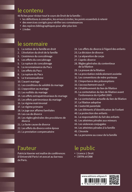 46 fiches pour réviser tout le cours de Droit de la famille :