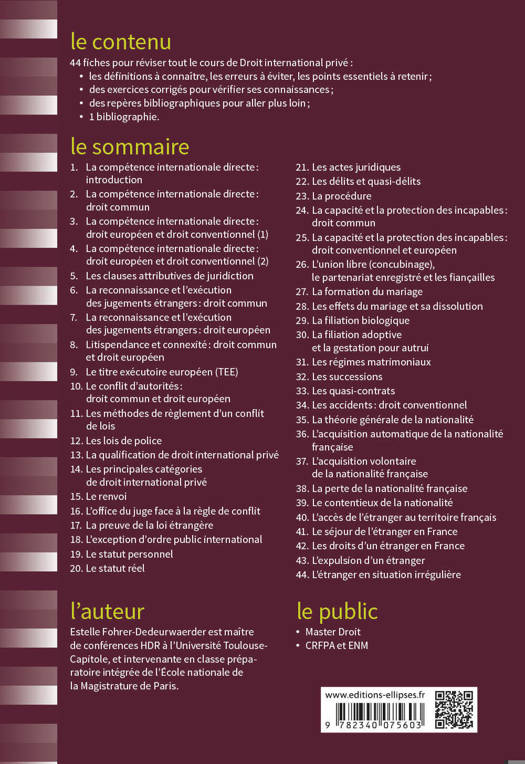 44 fiches pour réviser tout le cours de Droit international privé :