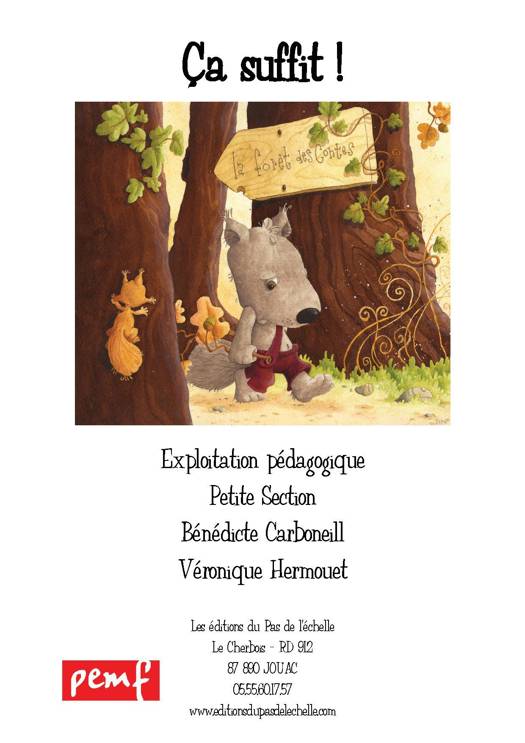 Le fichier: chaque fichier contient des fiches de travail en lecture, graphisme/écriture, numération, ordre et grandeur, topologie, logique, découverte du monde, arts plastiques ainsi qu'une comptine, un jeu et des coloriages : un outil pour travailller à partir de l'album Ca suffit ! de 1 à 3 semaines.