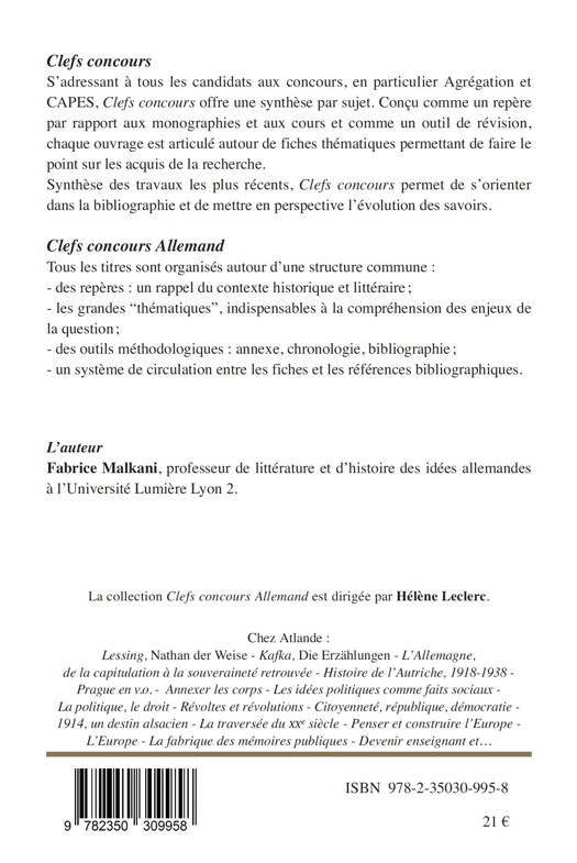 S'adressant à tous les candidats aux concours, en particulier Agrégation et CAPES, Clefs concours offre une synthèse par sujet. Conçu comme un repère par rapport aux monographies et aux cours et comme un outil de révision, chaque ouvrage est articulé autour de fiches thématiques permettant de faire le point sur les acquis de la recherche.