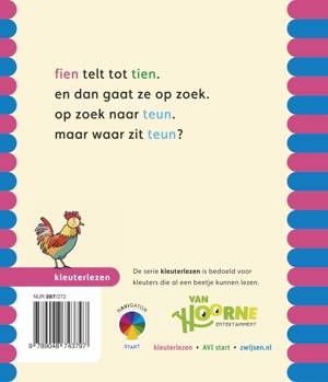 Kleuters lezen al snel zelf dit vrolijke kijk- en leesboek door veel herhaling van woorden. Fien & Teun, bekend van Avonturenboerderij Molenwaard, spelen verstoppertje. Zou Fien Teun wel kunnen vinden? In dit eenvoudige verhaal op AVI Start versterken beeld en verhaal elkaar.