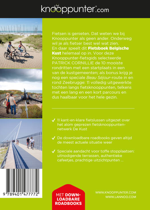 Voor deze Knooppunter-fietsgids selecteerde Patrick Cornillie de 10 mooiste rondritten met een startplaats in een van de kustgemeenten; als bonus krijg je nog een speciale Beau Séjour-route in en rond Zeebrugge: 11 volledig uitgewerkte tochten langs fietsknooppunten, telkens met een lang en een kort parcours en dus haalbaar voor het hele gezin.