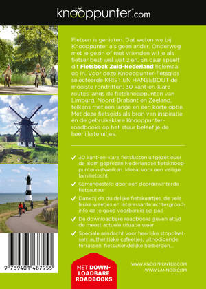 Fietsen is genieten. Dat weten we bij Knooppunter als geen ander. Onderweg met je gezin of met vrienden wil je als fietser best wel wat zien. En daar speelt dit Fietsboek Zuid-Nederland helemaal op in. Voor deze Knooppunter-fietsgids selecteerde Kristien Hansebout de mooiste rondritten: 30 kant-en-klare routes langs de fietsknooppunten van Limburg, Noord-Brabant en Zeeland, telkens met een lange en een korte optie.
