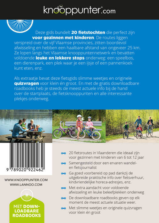Deze gids bundelt 20 fietstochten die perfect zijn voor gezinnen met kinderen. De routes liggen verspreid over de vijf Vlaamse provincies, zitten boordevol afwisseling en hebben een haalbare afstand van ongeveer 25 km. Ze lopen langs het Vlaamse knooppuntennetwerk en bevatten