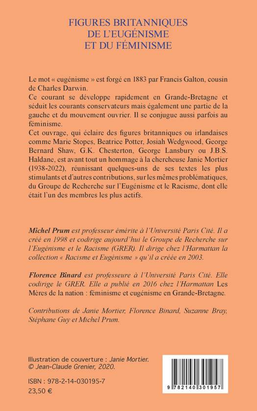 Le mot « eugénisme » est forgé en 1883 par Francis Galton, cousin de Charles Darwin. Ce courant se développe rapidement en Grande-Bretagne et séduit les courants conservateurs mais également une partie de la gauche et du mouvement ouvrier. Il se conjugue aussi parfois au féminisme. Cet ouvrage, qui éclaire des figures britanniques ou irlandaises comme Marie Stopes, Beatrice Potter, Josiah Wedgwood, George Bernard Shaw, G.K. Chesterton, George Lansbury ou J.B.S. Haldane, est avant tout un hommage à la chercheuse Janie Mortier (1938-2022), réunissant quelques-uns de ses textes les plus stimulants et d'autres contributions, sur les mêmes problématiques, du Groupe de Recherche sur l'Eugénisme et le Racisme, dont elle était l'un des membres les plus actifs.