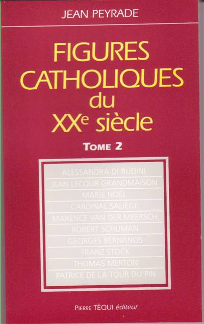 Le XXe siècle n'a pas été seulement un siècle de déchristianisation accélérée. Le XXe siècle est aussi le siècle qui a donné à l'Église ses plus nombreux martyrs et nombre de ses plus grands saints ! Après avoir évoqué dans un premier tome de ces Figures catholiques, Joris-Karl Huysmans, Jacques et Raïssa Maritain,le cardinal Jean Verdier, les pères Paul Doncoeur et Pierre Sanson, François Mauriac, Daniel-Rops, Édith Stein, Alcide de Gasperi et Gilbert Cesbron l'auteur poursuit ici sa présentation de quelques-uns de ces grands témoins du Christ, martyrs ou non, religieux ou laïcs, célèbres ou moins connus. Par leur diversité, autant que par l'absolu de leur engagement chrétien, ces hommes et ces femmes esquissent le portrait spirituel d'un siècle dont les richesses théologales restent à découvrir. Au sommaire : Alessandra Di Rudini, Jean Lecour Grandmaison, Marie Noël, cardinal Saliège, Maxence Van der Meersch, Robert Schuman, Georges Bernanos, Franz Stock, Thomas Merton, Patrice de la Tour du Pin.