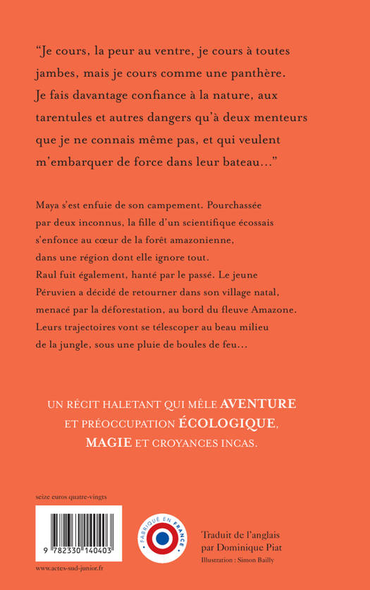 Maya s'est enfuie de son campement. Pourchassée par deux inconnus, la fille d'un scientifique écossais s'enfonce au coeur de la forêt amazonienne, dans une région dont elle ignore tout. Raul fuit également, hanté par le passé. Le jeune Péruvien a décidé de retourner dans son village natal, menacé par la déforestation, au bord du fleuve Amazone. Leurs trajectoires vont se télescoper au beau milieu de la jungle, sous une pluie de boules de feu...